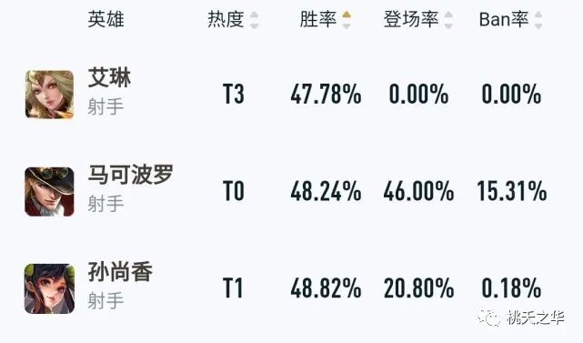 因此在调整以后,马可波罗的胜率从发育路倒数直接变为了垫底,而且从发育路的榜单来看,不仅仅是马可波罗胜率不如意,只要是拥有位移的射手,胜率都不高,尤其是公孙离与马可波罗,更是常年处在射手榜单末尾,与这两位同样属于难兄难弟的还有孙尚香与李元芳。