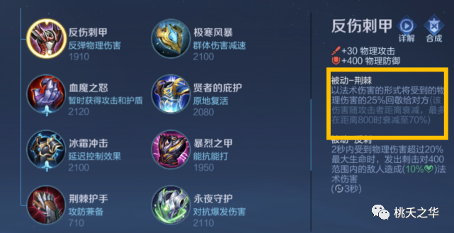 队友的回答就是,回复类英雄,回血越多,反伤刺甲的反弹伤害越多。