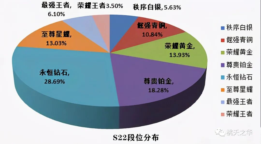 从分布图上来看,永恒钻石的数量占到了百分之28.96,依然是玩家数量最多的段位,看来还是有很多玩家被困在永恒钻石。