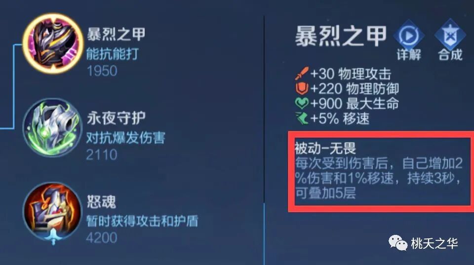 暴烈之甲拥有30物理攻击、220点物理防御、900点最大生命、百分之5的移动速度,最重要的是被动效果,受到伤害后,可以增加百分之2的伤害以及百分之1的移动速度,叠加五层。