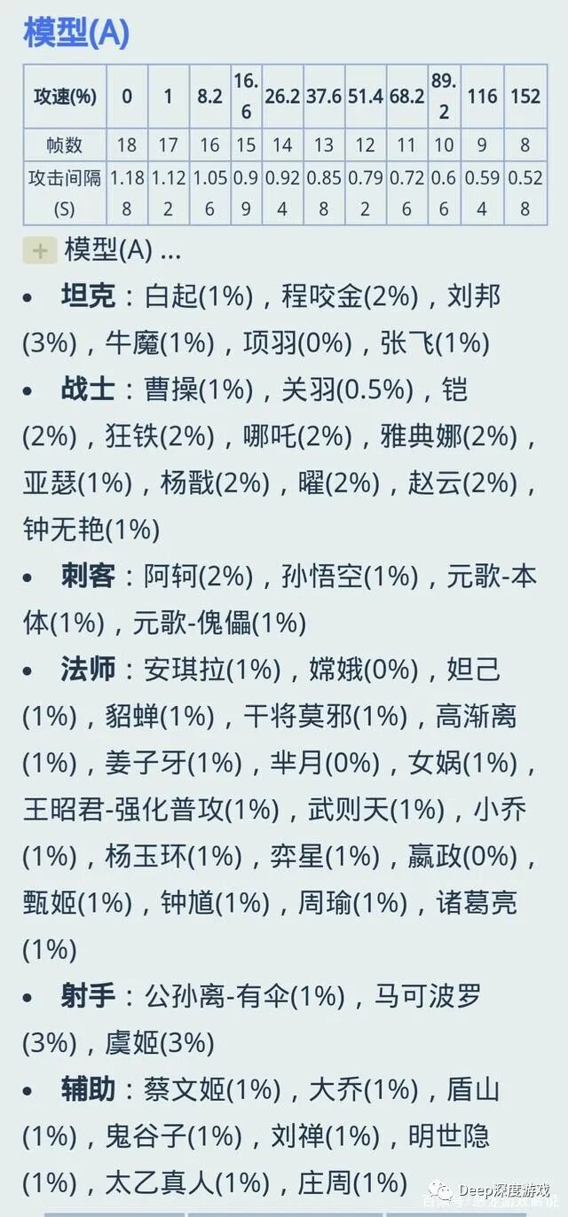 以上就是目前为止王者荣耀所有英雄的攻速模型了,可以从中找到你想要接了的英雄攻速档位以及攻速阈值,如果找了好久也找不到,可以关注小编然后私信,小编会通过私信方式发给你。