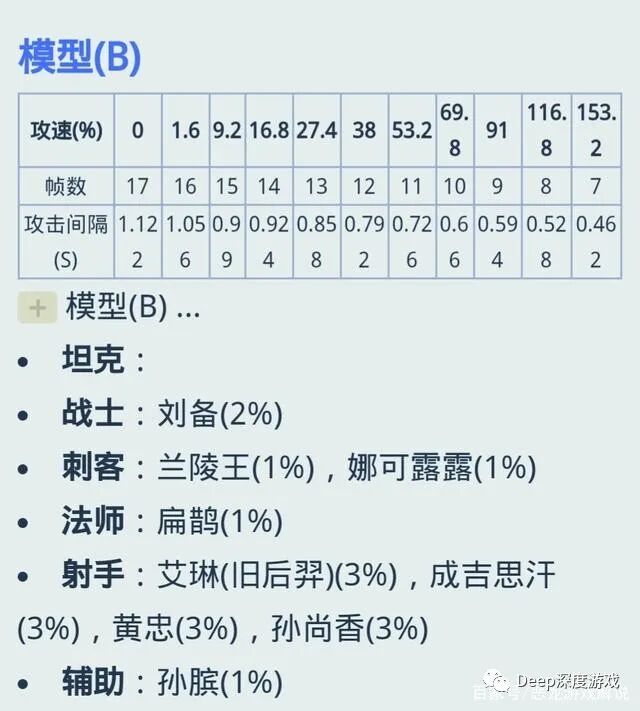 而152%攻击速度就是下一个攻速档位,就是说116%攻击速度哪怕加上30%攻击速度实际没事任何提升,就是说模型A的英雄116%攻击速度=146%攻击速度。