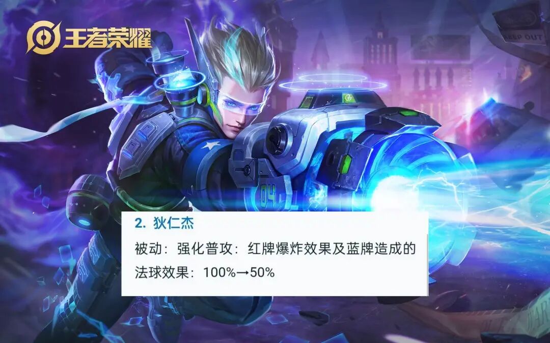 这一次主要就是削弱了被动强化普攻红牌爆炸效果以及蓝牌造成的法球效果从100%降低为50%。