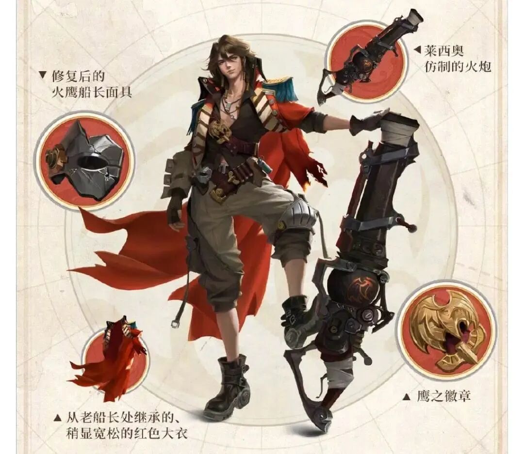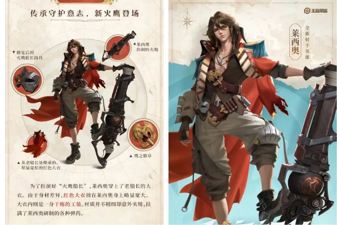 目前官方也已经公布了这位英雄的形象,如图所示,大家可以参考一下,这就是新英雄莱西奥,有一个外号叫做火鹰船长。