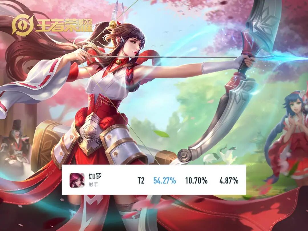 然后就是伽罗这位英雄,在新赛季更新之后整体的胜率也是往上升的,目前在全分段中已经高达54%,并且还有不错的出场率。