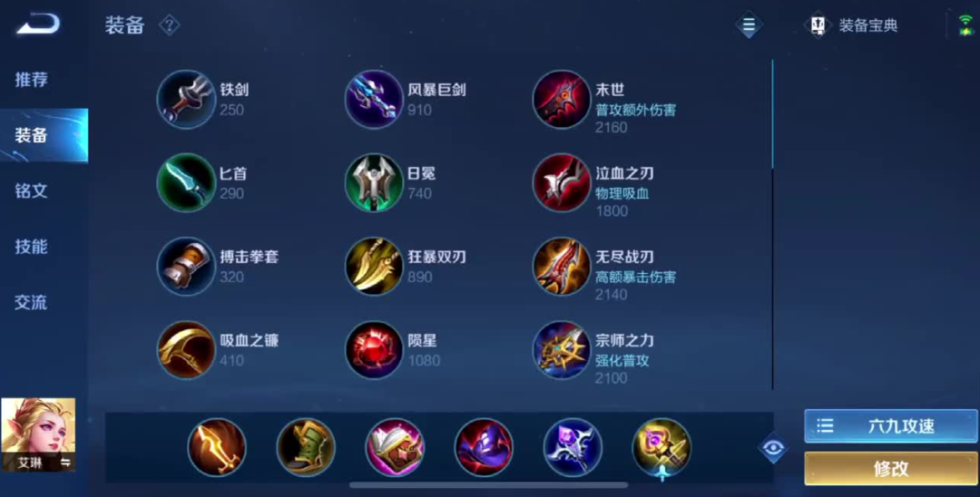 需要注意的是当对面坦克过于厉害的时候,艾琳一定要出虚无法杖这件装备,因为虚无法杖可以可以增加艾琳的法术穿透能力,打肉也更加疼,至于其它出装是纯输的,攻速暴击流出装,打人还是非常疼的,但是影刃也是可以调整的,根据敌人换装备,换成逐日之弓,可以增加自身的远程消耗能力。
