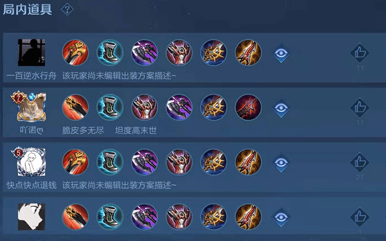 出装顺序:韧性鞋、反伤刺甲、暗影战斧、宗师之力、无尽战刃、贤者的庇护