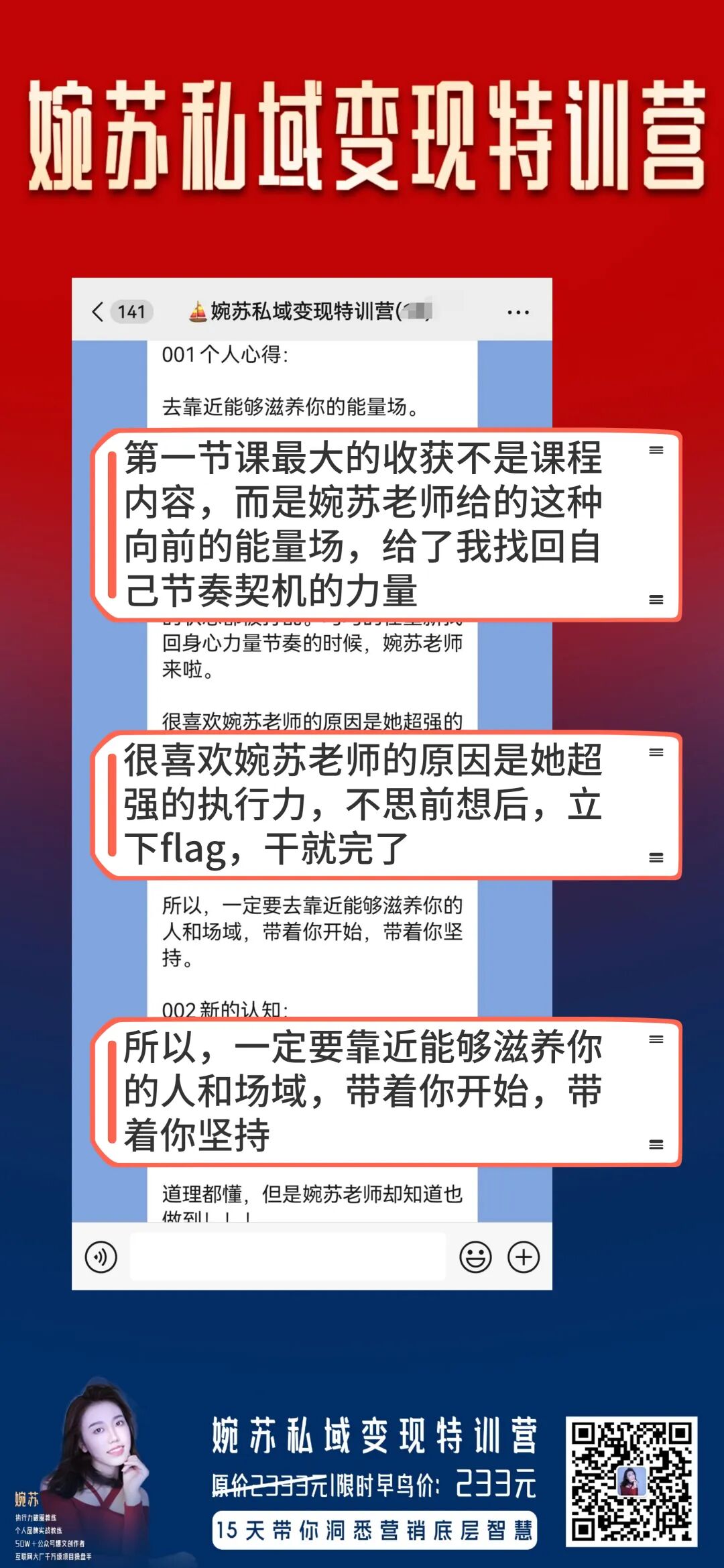 我一直跟大家说要主动给自己创造正反馈,比如我的个人品牌私域变现课程,我把交付做好了,让大家非常受益了,他们就很乐意写复盘和作业,而且写的都很好,因为真正受益了呀。
