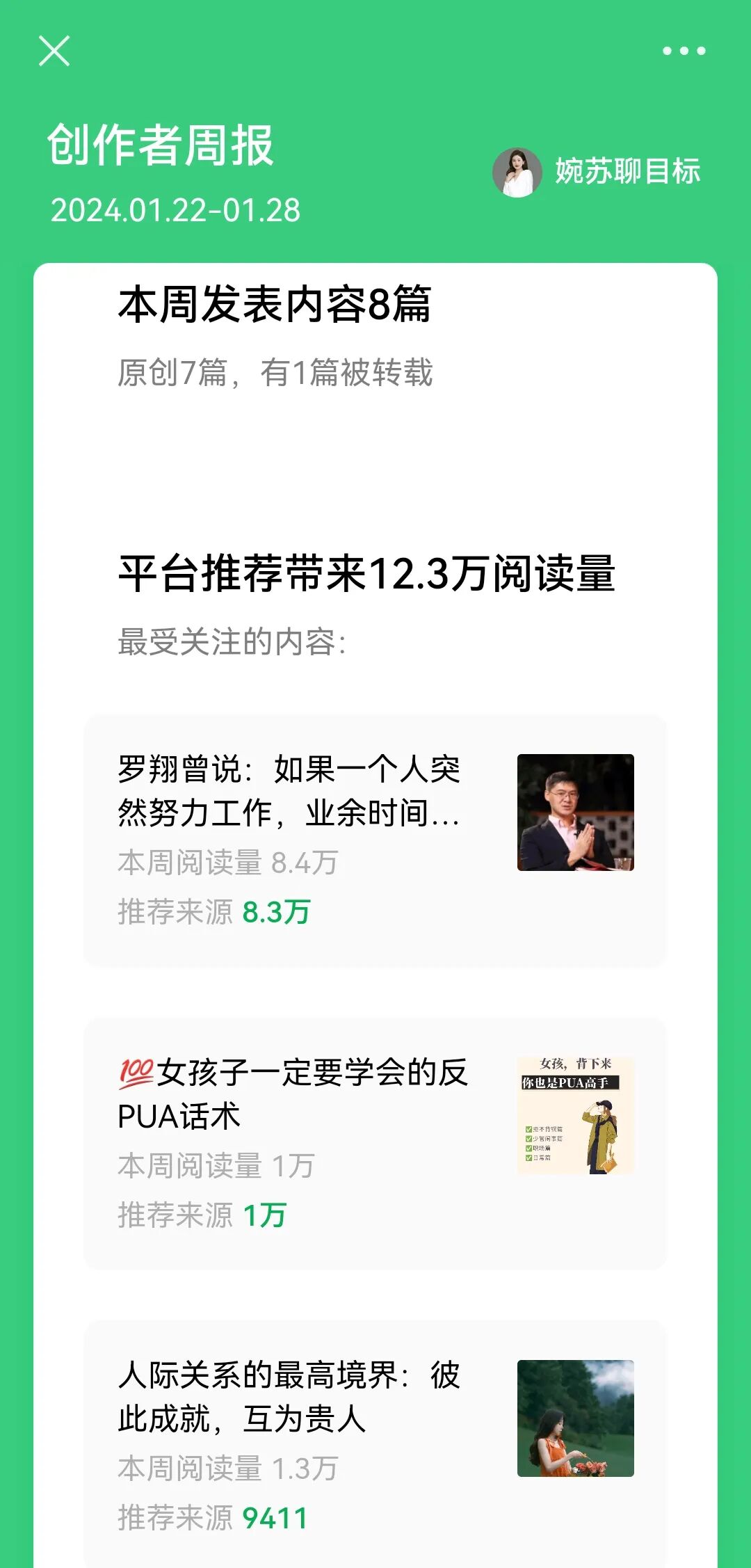 这一周的里程碑事件就是写出了一篇8W➕公众号爆文,涨粉300➕。