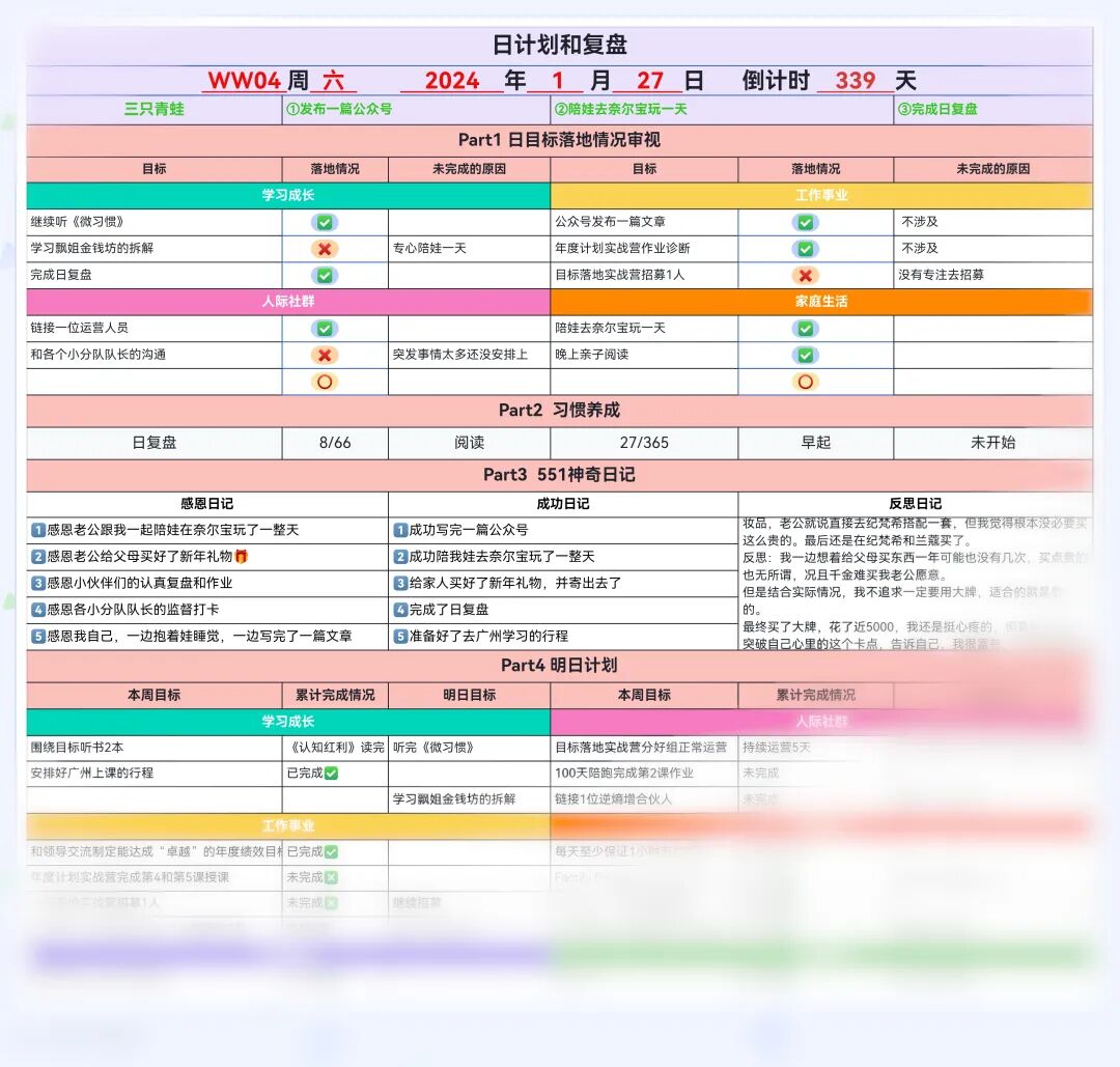 这套模板真正把 计划-执行-复盘-迭代-再计划-再执行-再复盘-再迭代 这一套逻辑揉进去了。