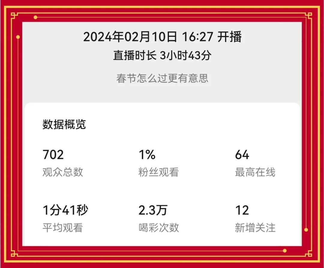 2024年给自己定了个目标:直播100场,原计划春节期间开播。