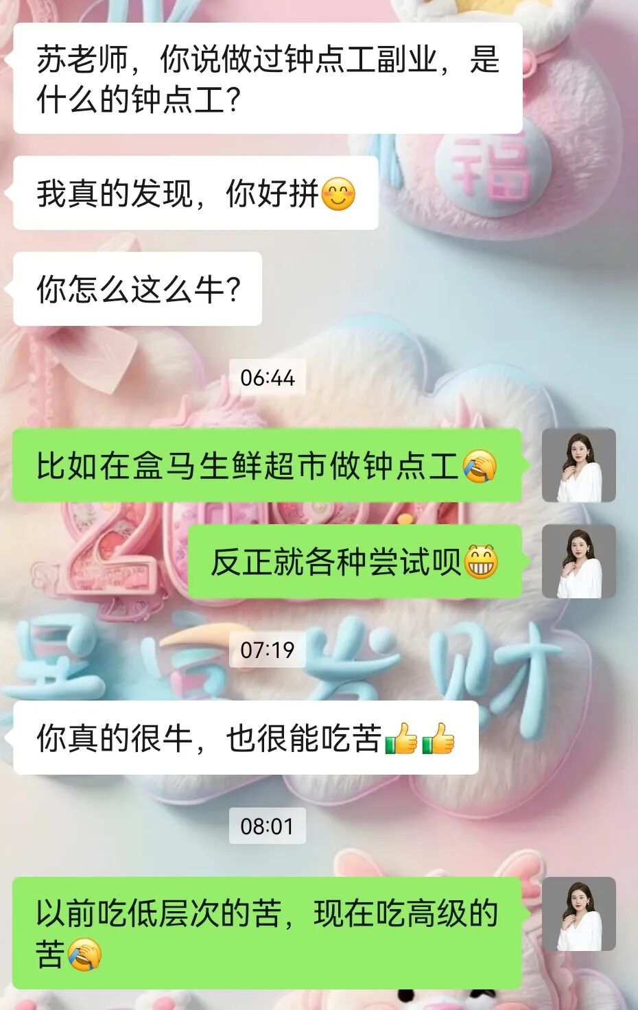 以前的吃低层次的苦,现在是吃高级的苦;低层次的苦本身就是低效的努力,一份时间只有一份收入,最重要的是这份收入和自己的价值不对等。