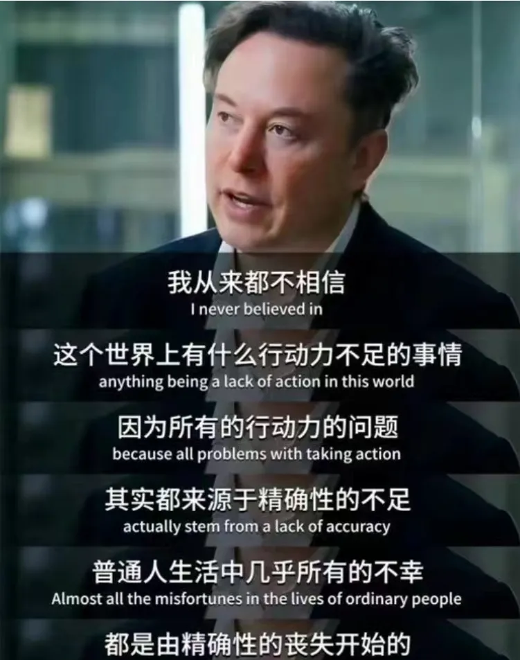 马斯克说:我从来不相信这个世界上有什么行动力不足的事情,因为所有的行动力问题,都是来源于精确性的不足。