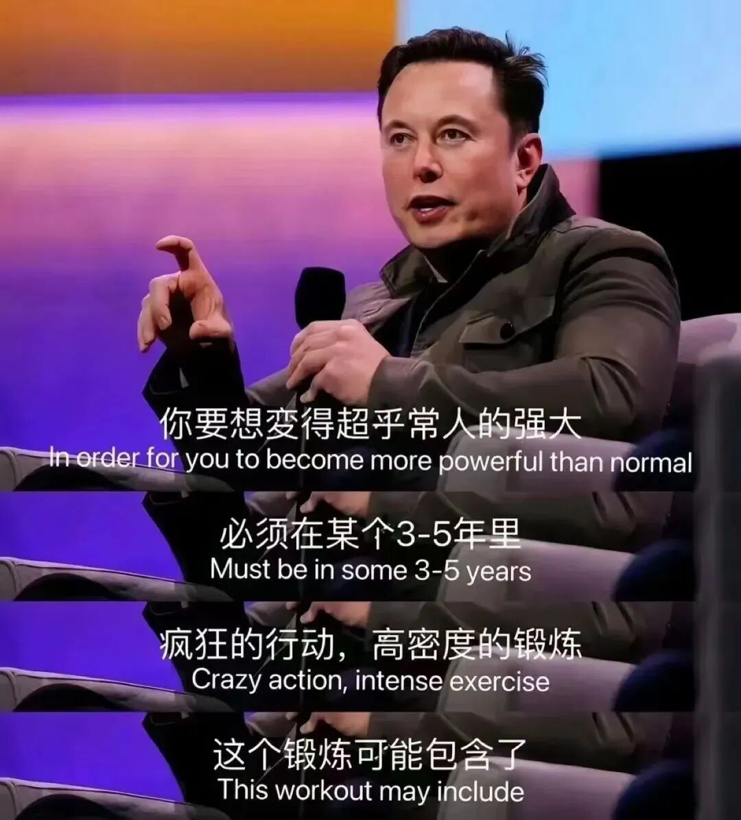 马斯克说:你要想变得超乎常人的强大,必须在某个3-5年里疯狂的行动,高密度的锻炼。