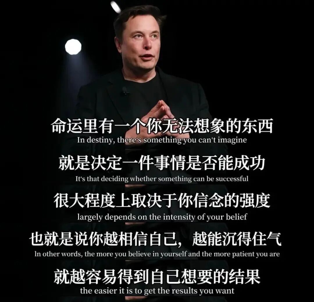 马斯克曾说:命运里有一个你无法想象的东西,就是决定一件事情是否能成功,很大程度上取决于你信念的强度。