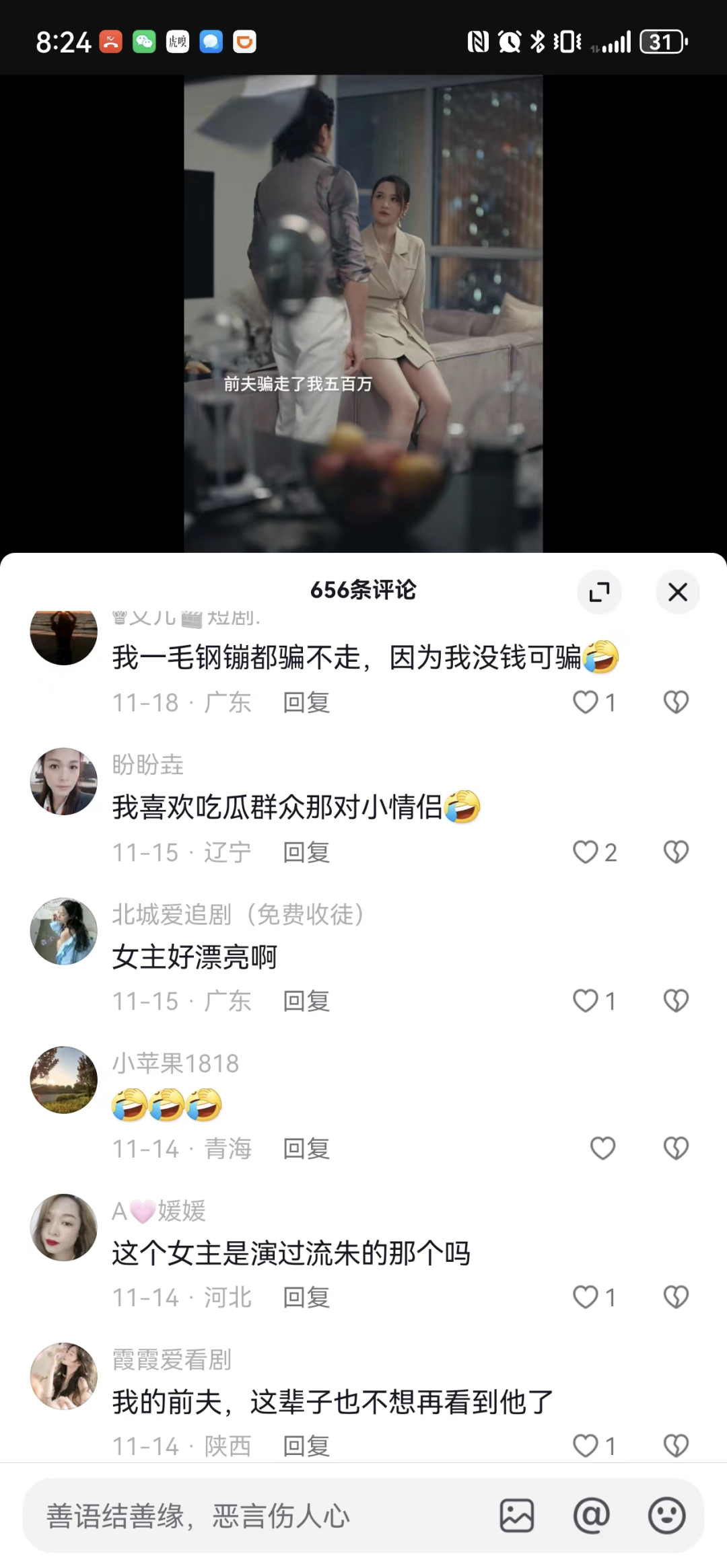为了对比,我专门去抖音上找了个类似的短剧看。结果很满意,两边的画风不能说完全一致,起码是一模一样。