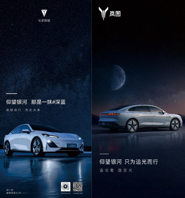 首当其冲的是长安深蓝,火速发布海报并配文“仰望银河 那是一抹深蓝”。