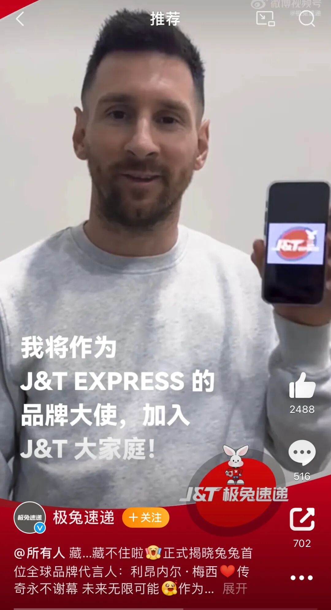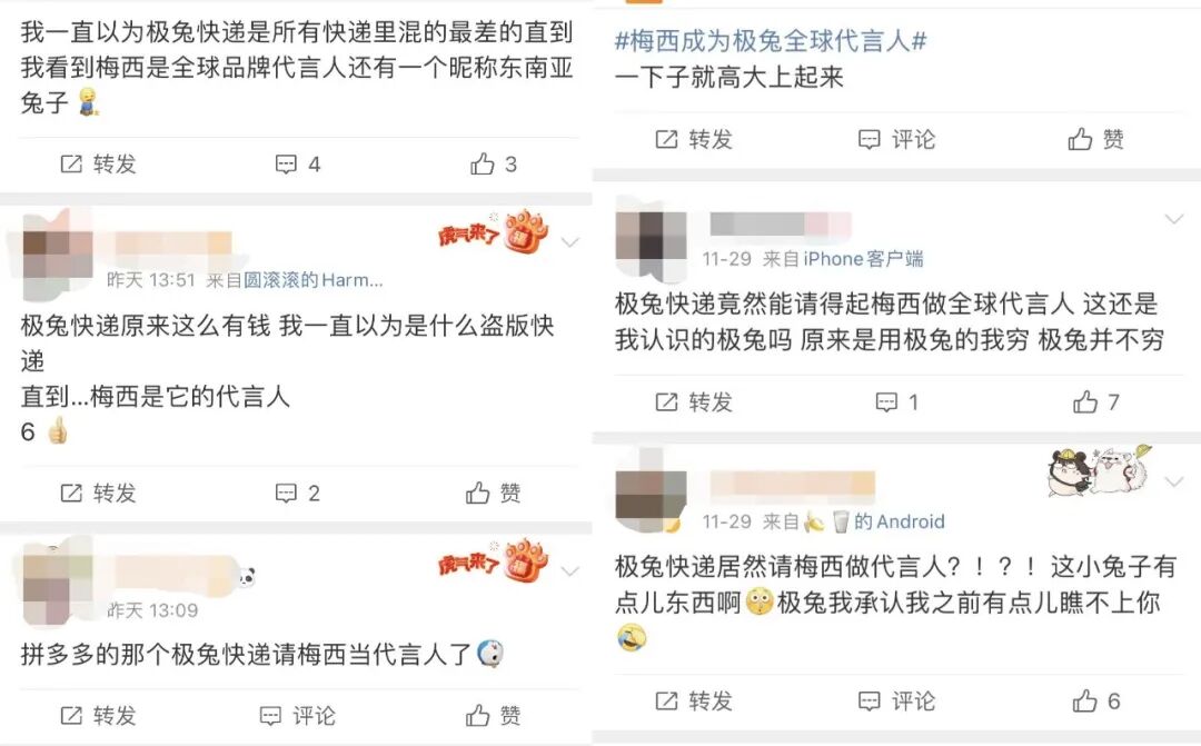 “我一直以为极兔快递是所有快递里混的最差的,直到我看到梅西是全球品牌代言人。”