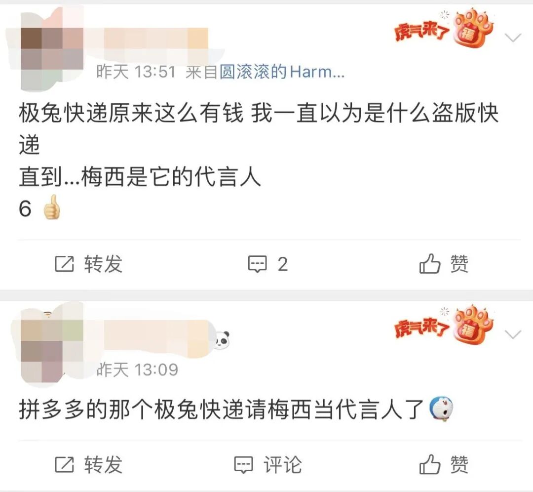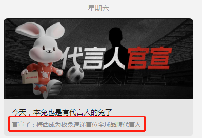 “一时不知道是震惊快递也有代言人,还是震惊极兔代言人竟然是梅西。”