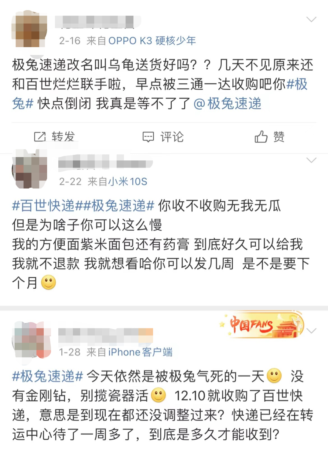 “这还是我认识的极兔吗,原来是用极兔的我穷,不是极兔穷。”