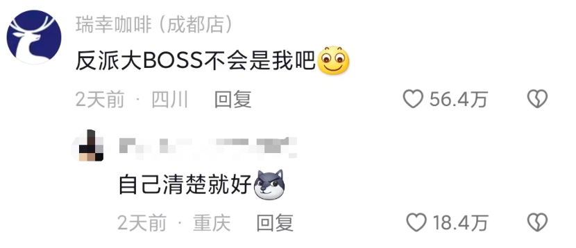 现在最尴尬的估计是瑞幸了,说又不敢说,骂又不敢骂,只能在评论区小声发问,“反派大BOSS不会是我吧?”