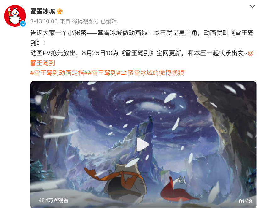 这边动画就要上线了,下一步建议雪王再接再厉,赶紧研发以雪王为主角的游戏,进军游戏圈刻不容缓。