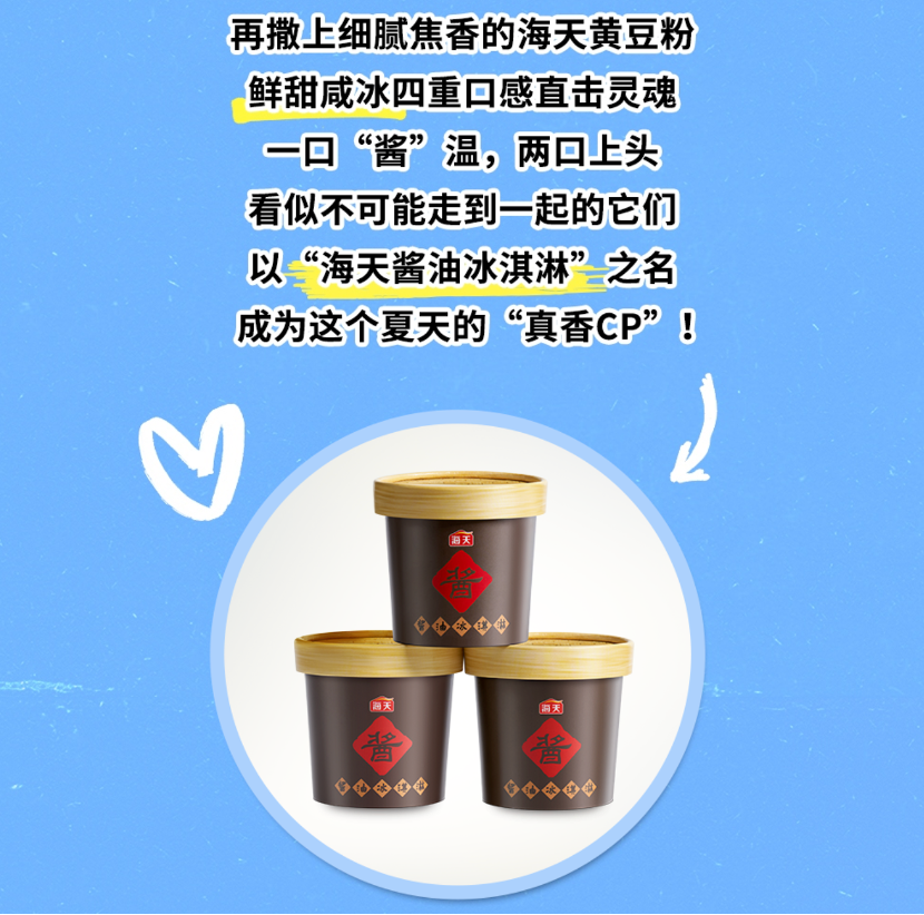 没错,就是那个卖酱油的海天,还有夏天你最喜欢的冰淇淋,一结合,就成了“酱油冰淇淋”。