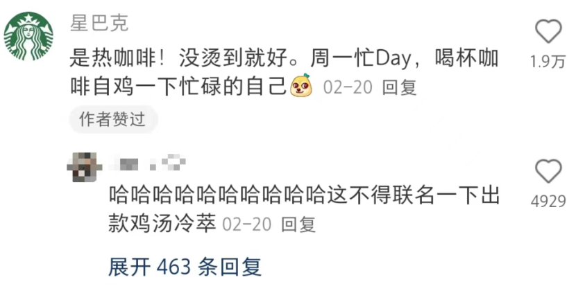 不知名网友建议:这不得联名出款鸡汤冷萃咖啡?