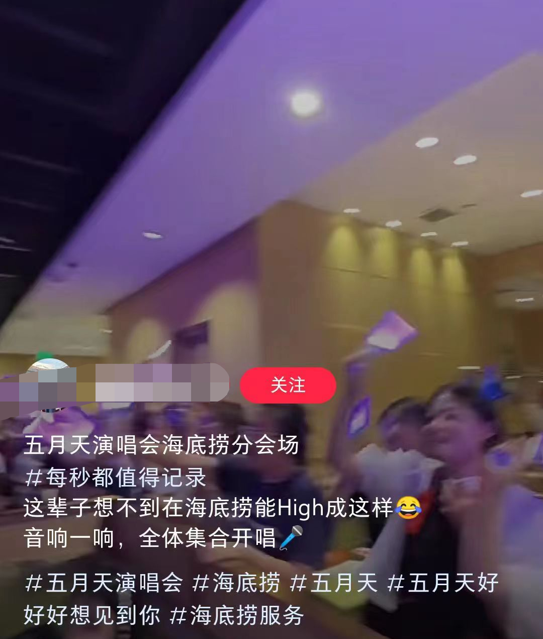 有人认为演唱会结束去海底捞afterparty,是一种仪式感。店里员工会一起拿着荧光棒high,即使不是五迷也会被带动起来。
