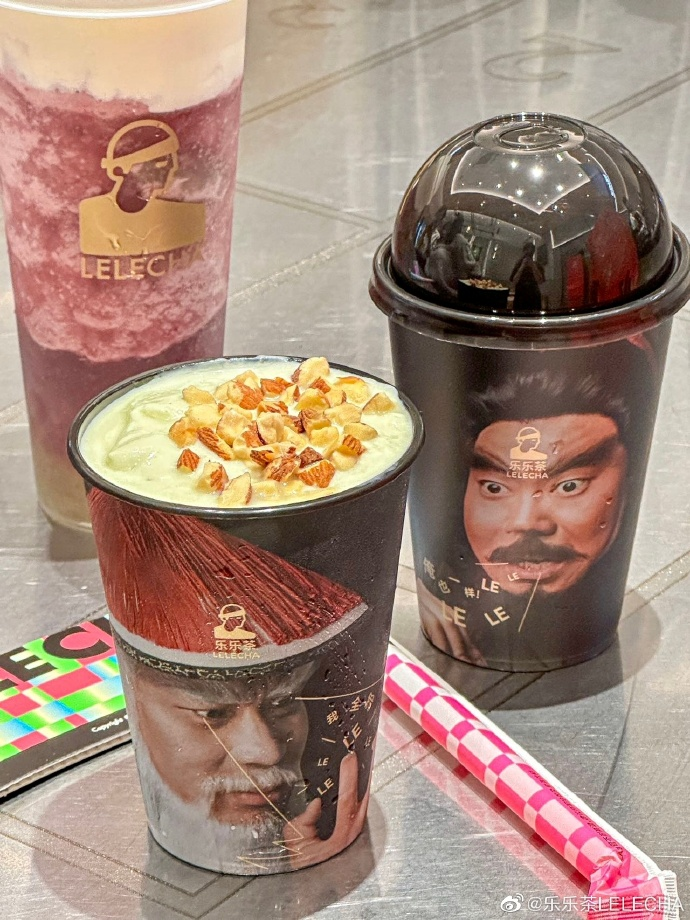 别的茶饮品牌都热衷于走清新、可爱、简约的设计风格,唯有乐乐茶不走寻常路,将张飞、李逵、鳌拜、蒙丹这四个在网络上极具盛名的大汉印到了杯身上。