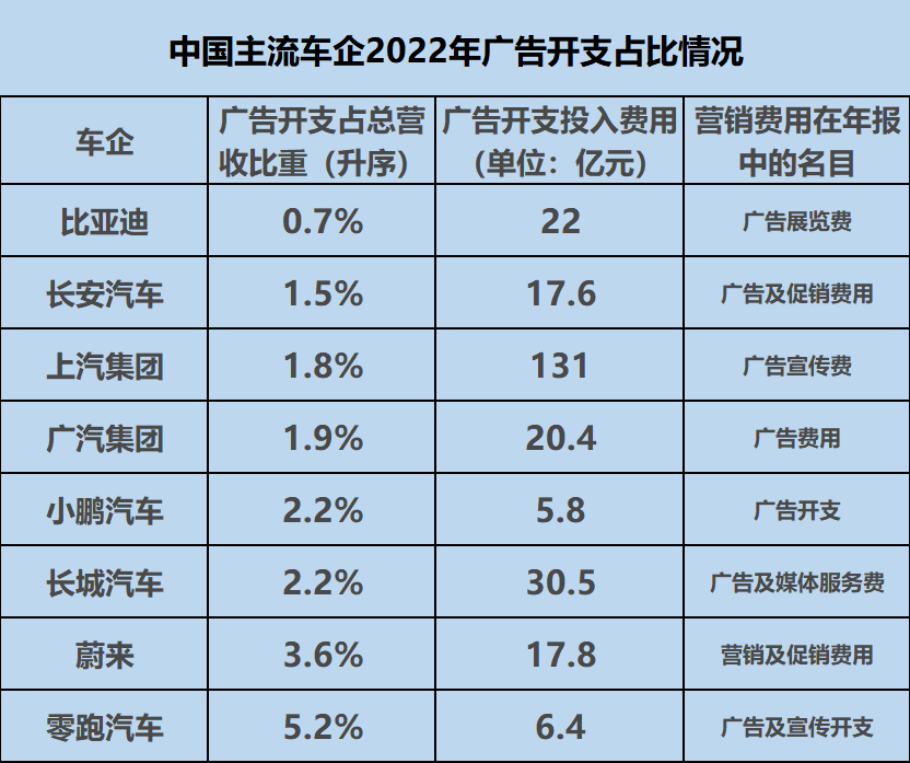 在我国造车新势力,广告开支基本占据总营收的2%以上。