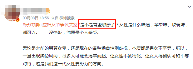 三八妇女节当天,一篇《女性,是什么味道?》的推文引发热议,大部分网友认为这个标题不怀好意,不尊重女性,是实打实地打擦边球。
