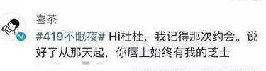杜蕾斯对话喜茶的文案:“第一口最珍贵,今晚一滴都不许剩”。喜茶则回复:"你唇上始终有我的芝士"。