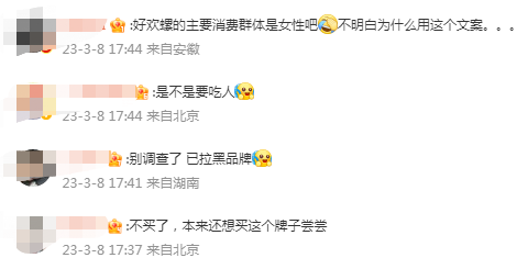 好欢螺的这篇推文让其迅速成为众矢之的,很多人纷纷表示抵制这个品牌。