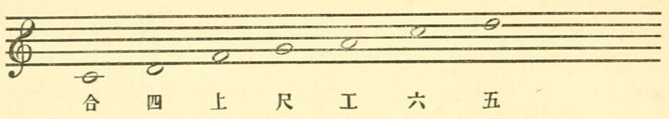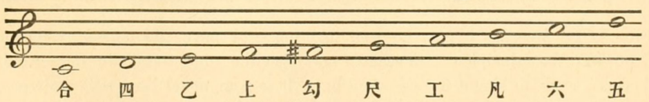 所以,宫就是合,于是,我们就有了五个乐谱简记符号