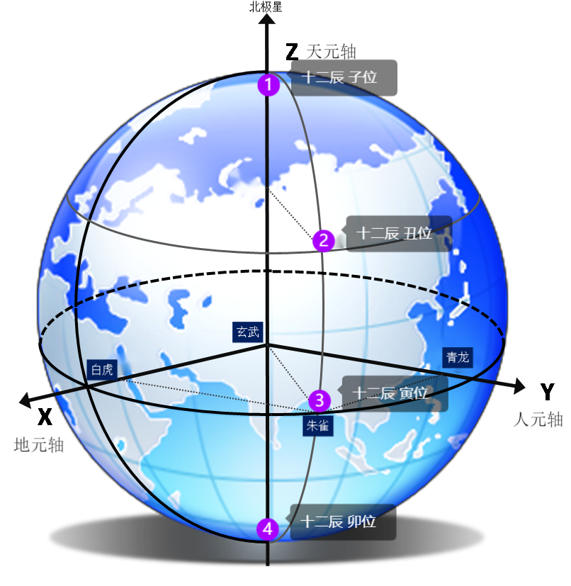 那么,北极星二十八宿,天干地支,生成四象,十二辰