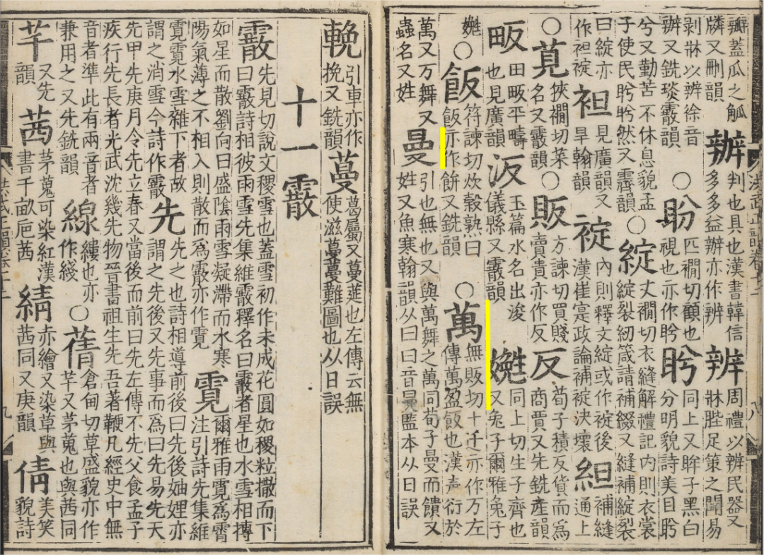 在洪武正韵中,声头 w 音是没有的。现代汉语发 w 音的,在洪武正韵中,分到 m, v 等声头组
