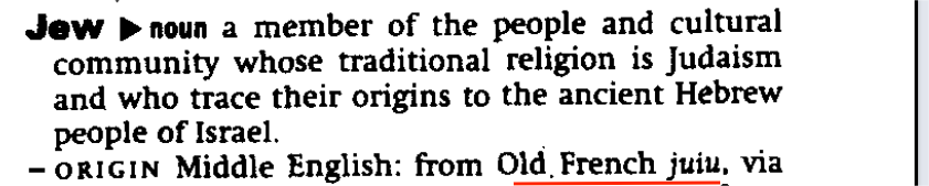 根据牛津标注,犹太 jew,来自古典法语 juiu