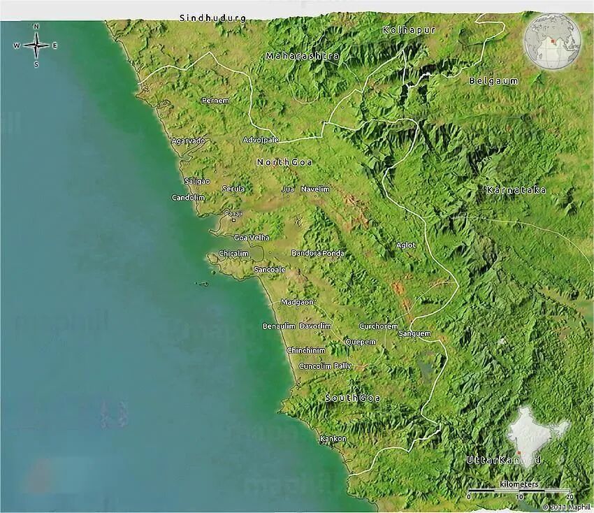 对比一下,印度果阿地形,跟戴云山莆田海地形,非常相似,方向相反