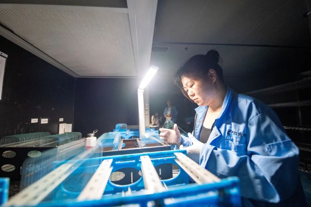 2023年8月30日,江西抚州,位于金溪县光电产业园的江西富群光电科技有限公司的员工在生产线上赶制出口产品/图源:视觉中国