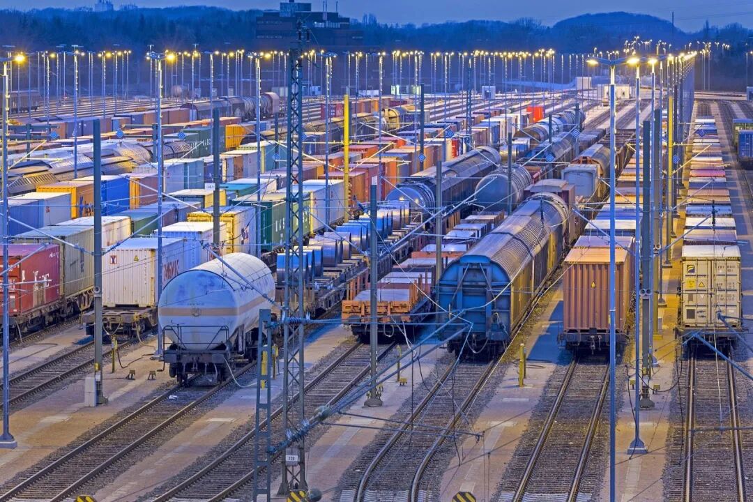 位于中欧的德国,夜间在轨道上停放货车/图源:视觉中国