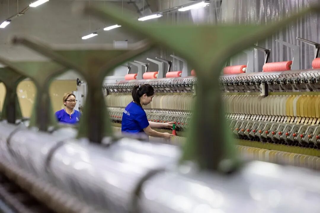 蒙古乌兰巴托,某工厂羊绒服装生产线上的员工/图源:视觉中国
