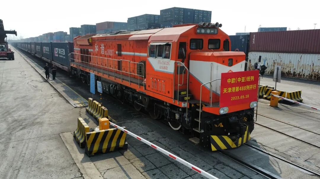 2023年9月18日,中欧(中亚)班列天津港第488列开行/图源:视觉中国