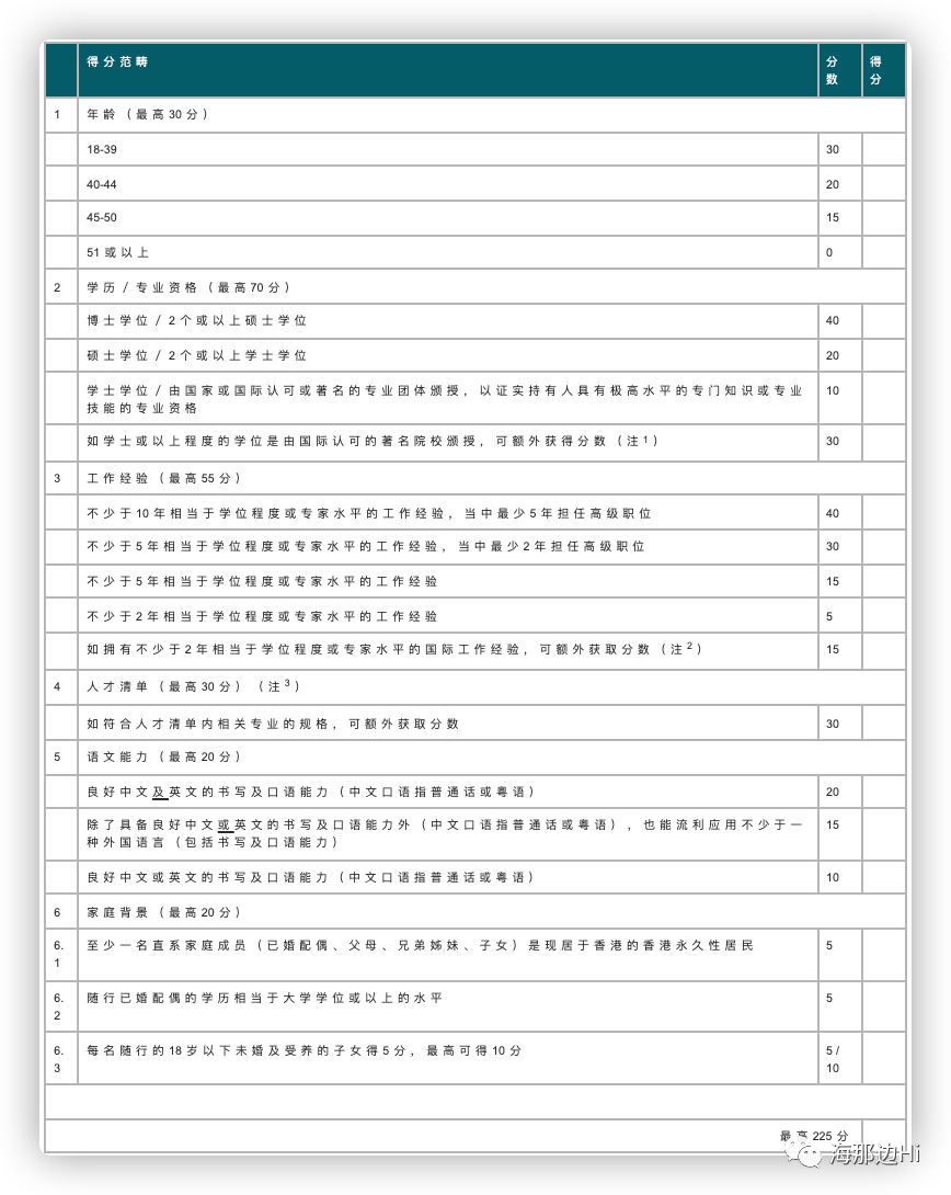 这个打分就是“香港优秀人才入境计划”的评估环节。