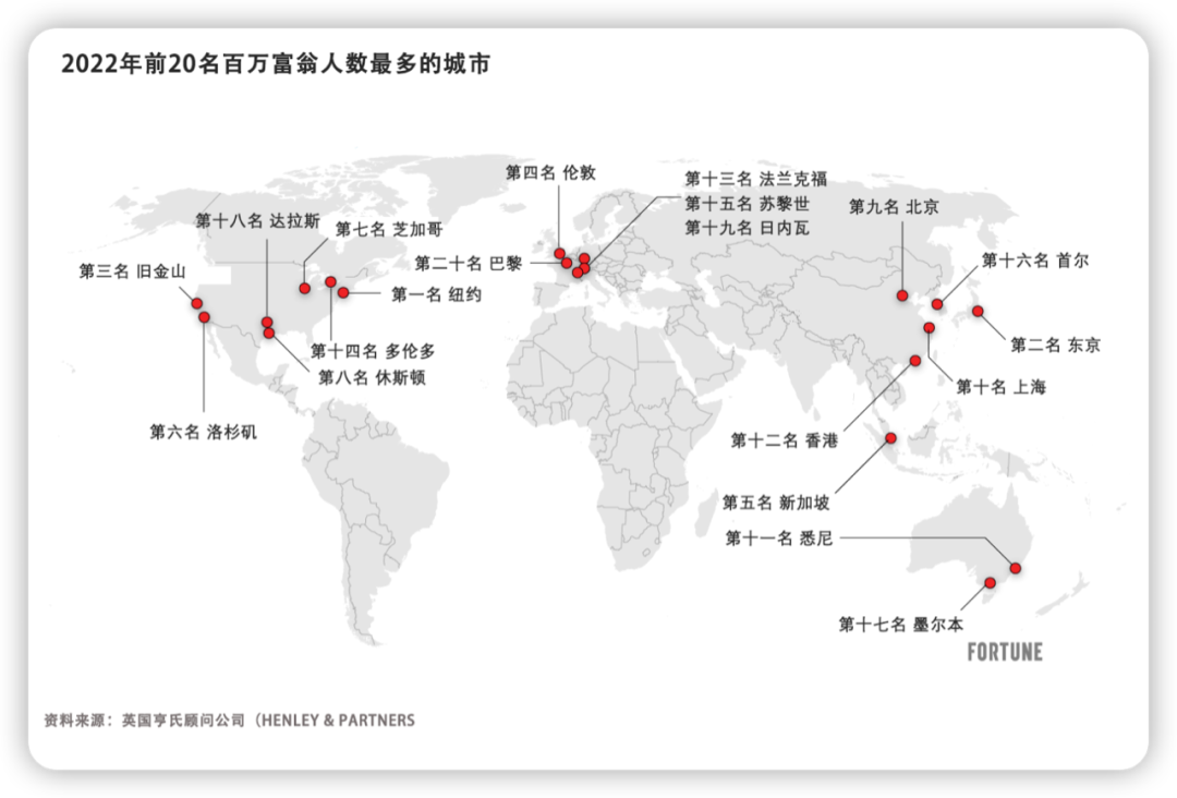 最近,英国亨氏顾问公司(Henley & Partners)与新世界财富公司(New World wealth)合作发布了《全球公民报告》(Global Citizens Report),列出了全球前20名百万富翁人数最多的城市。