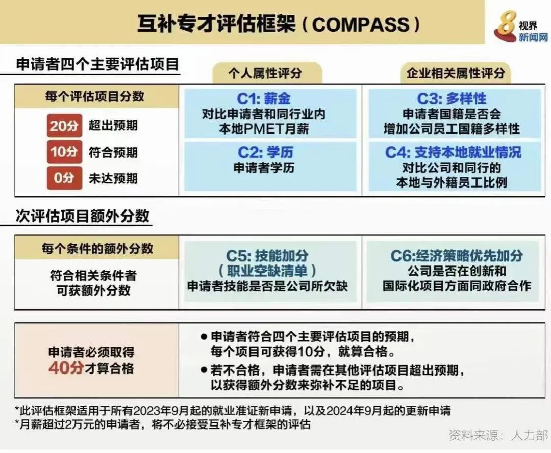 从2023年的9月1日开始,新加坡的EP准证的审核将更加严格,并新增了一个打分系统,去了名字叫做“互补专才评估框架”。