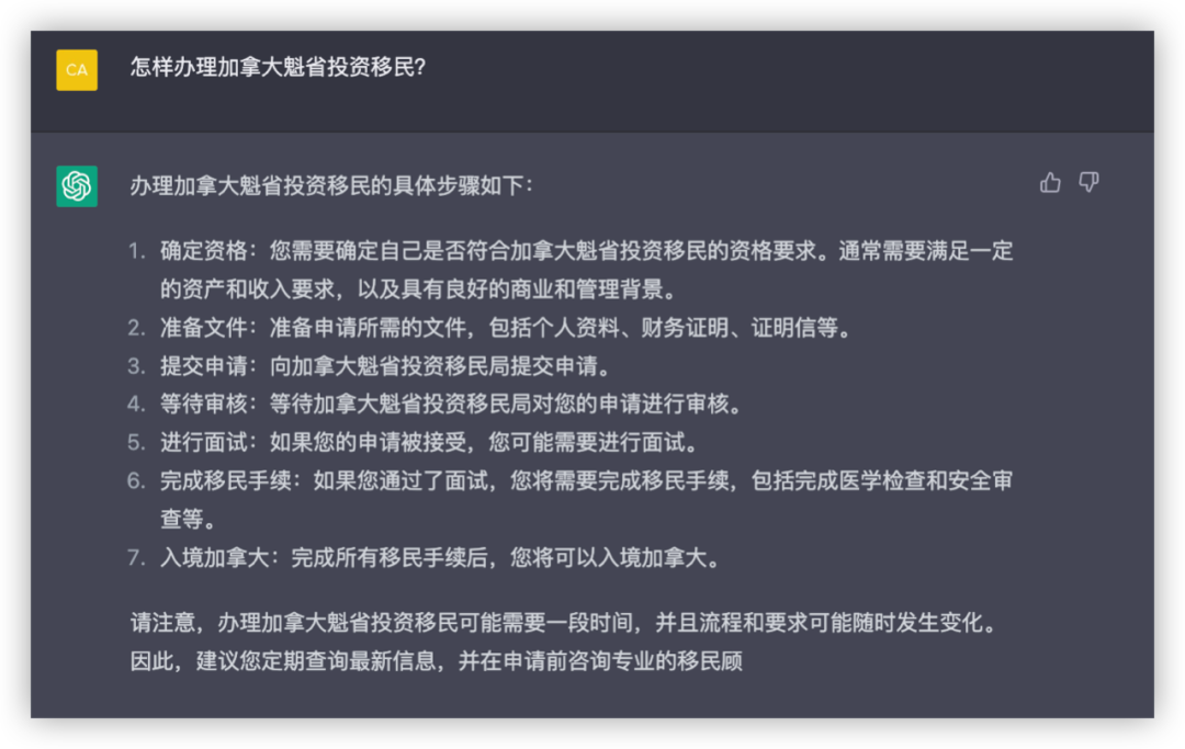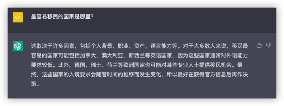 既然这个ChatGPT这么火,那我们为何不来问问它关于移民的问题呢?
