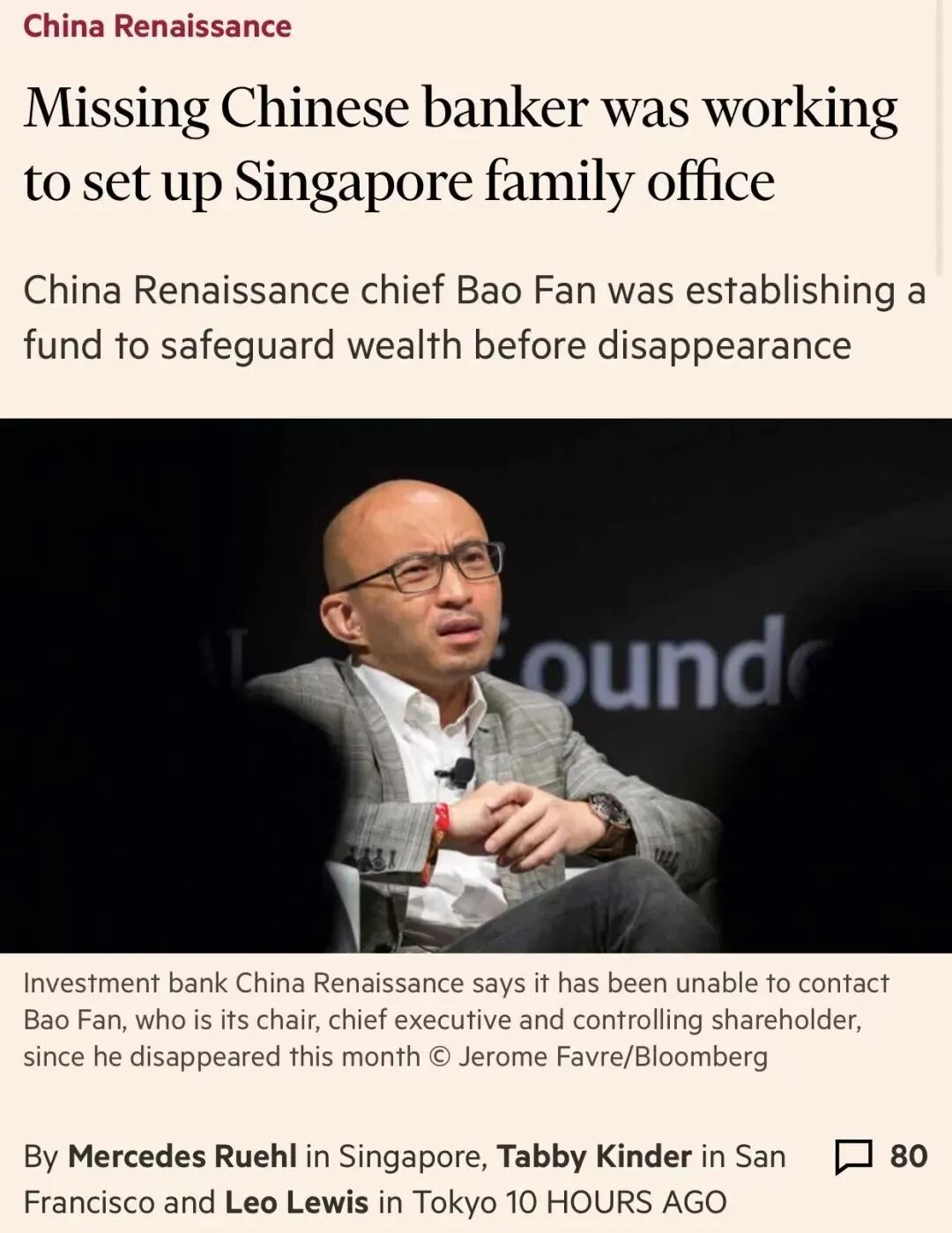 根据FT中文网的报道,包凡在失联之前的几个月,正准备将内地和香港的资产转移到新加坡,不过究竟有没有转移成功就尚未可知。