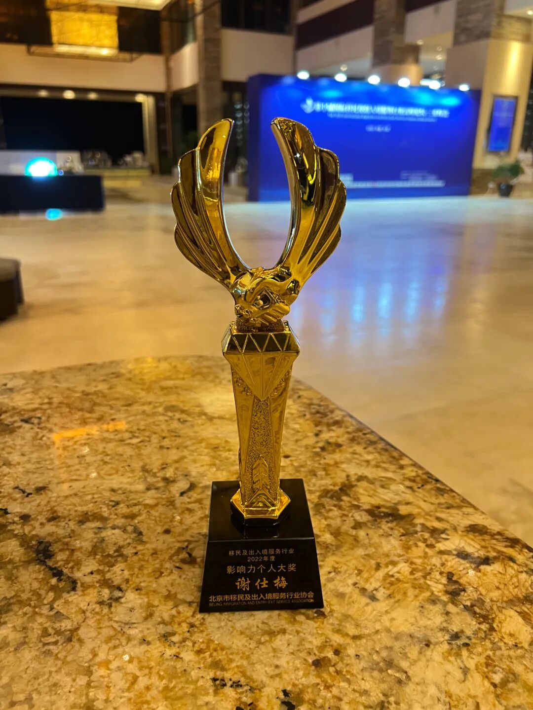 本次论坛,谢仕梅女士被主办方颁授“移民及出入境行业2022年度影响力个人大奖”。