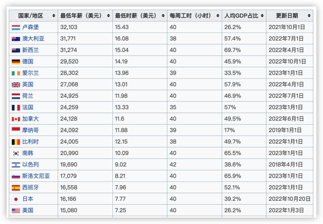 我们可以看看下面这张表,是全球最低工资标准的排名,排名前列的澳大利亚、新西兰、加拿大这些国家,那都是移民大国,最近这些年很多中国人移民过去,图的是啥,不就是这些国家赚钱更多吗?